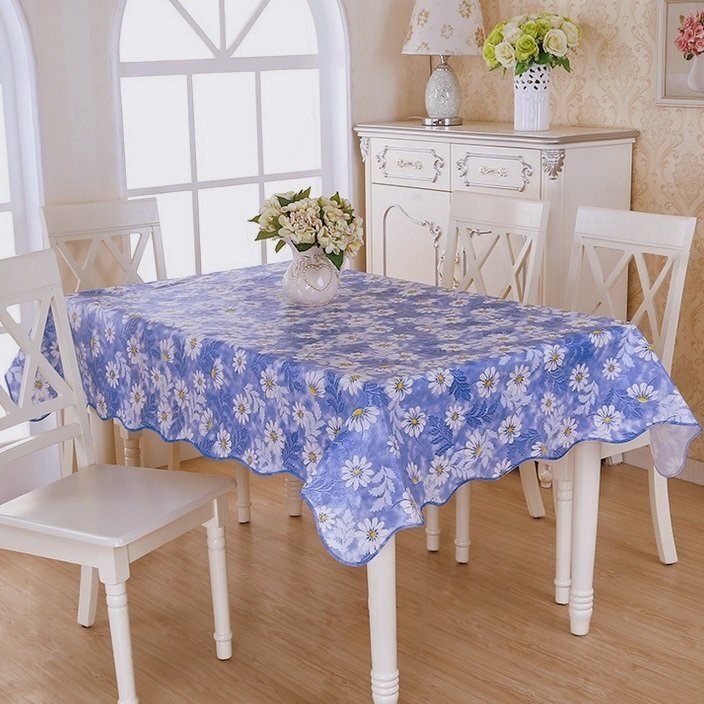 - テーブルクロス デイジー なみ縁取り PVC製 防水防油加工 青地系 DJ2138