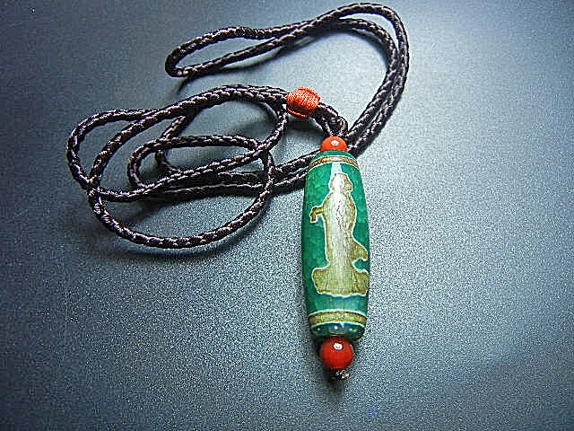 - ★西蔵至純天珠★XT9371 緑砂龍紋 双観音 特上級 40mmネックレス周長さ約66cm入手難