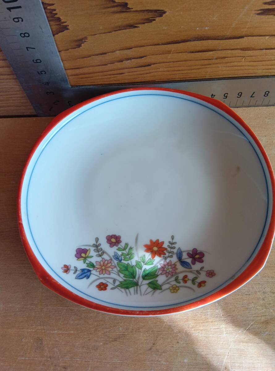 - 24111504 蔵出し和食器 赤渕絵皿 花柄 小花柄 朱色枠絵皿 小花柄小皿