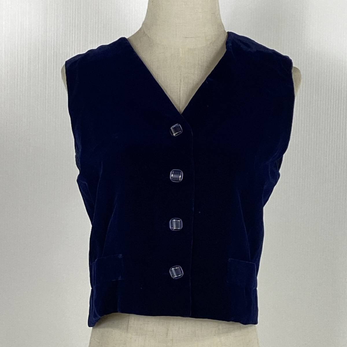 - YZ1061 レディース ベロア生地 ベスト ジレ ネイビー 華やか 万能 パーティー お呼ばれスタイル お洒落 ヴィンテージスタイル USED 古着