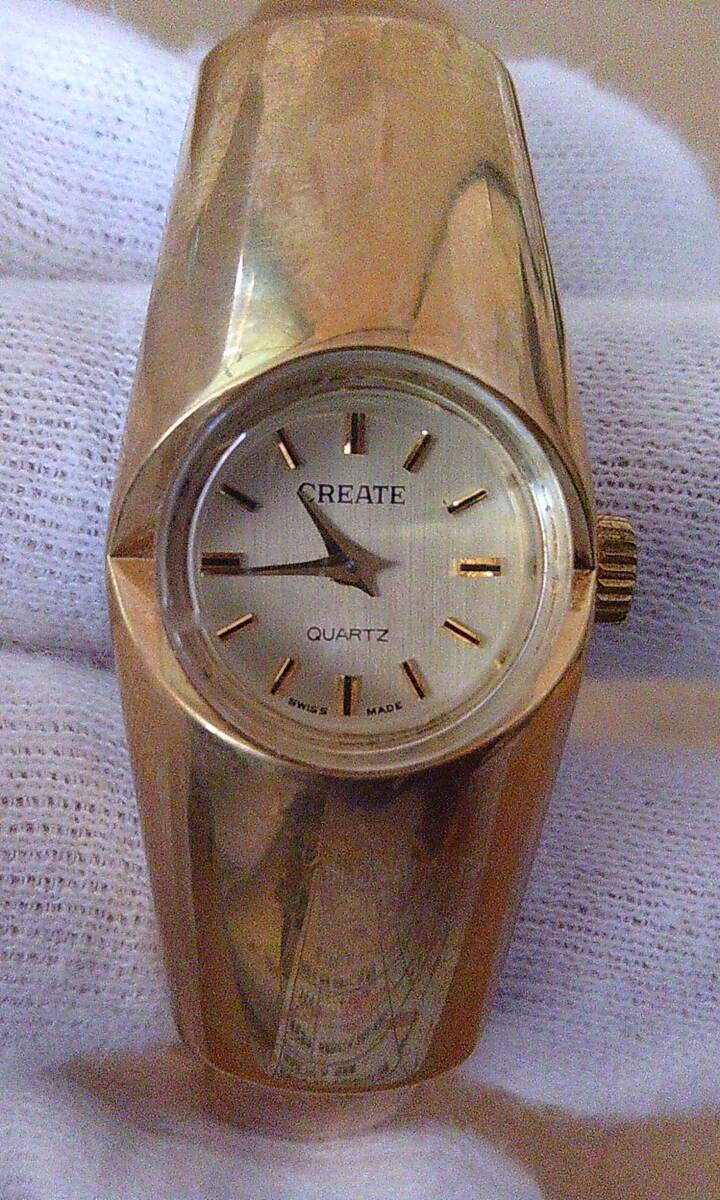 > ■く-345 CREATE スイス製 腕時計 クォーツ 中古 刻印あり 電池切れ 大きさ/約寸:最大)高2.5cm 幅6.2cm 奥6cm 重さ61.4g