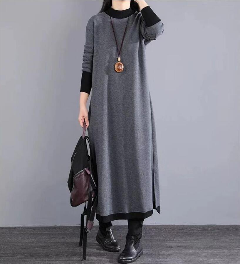 - 秋冬美品*ロングワンピース ワンピース レディース マキシ丈 ロング丈 ハイネック ゆったり 体型カバー もこもこ 大人 シンプル *灰