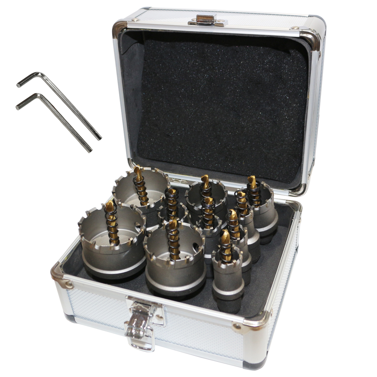 - 10本組 超硬 ホールソー 穴あけ センタードリル スプリング付き アルミケース 鉄板 ステンレス アルミ 金属 木 FRP 万能