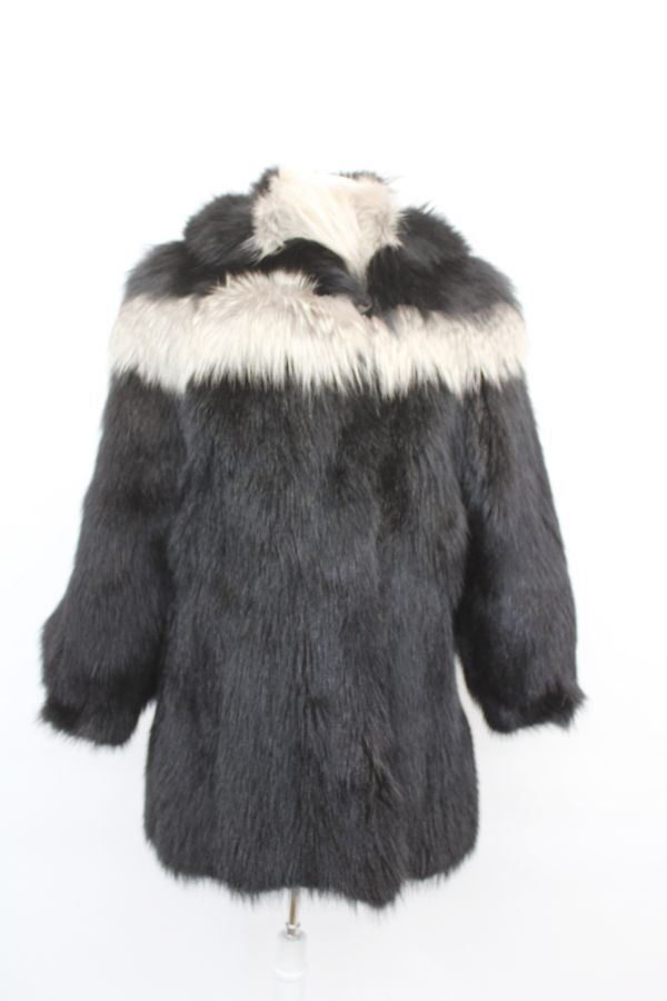 - ブラック・ラクーン&フォックス毛皮ファー・ジャケット アメリカンサイズ4 フードつき