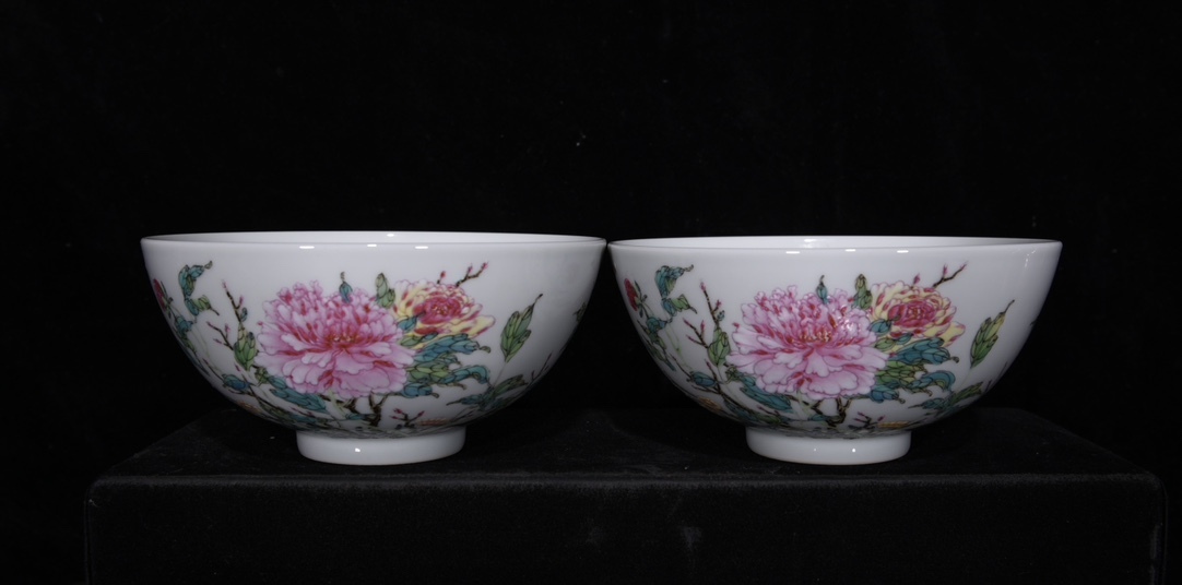 - ◆旧家蔵出◆古美術 中国古玩 大清雍正年製款 粉彩 牡丹花卉紋―對 古賞物 骨董 時代物 A06