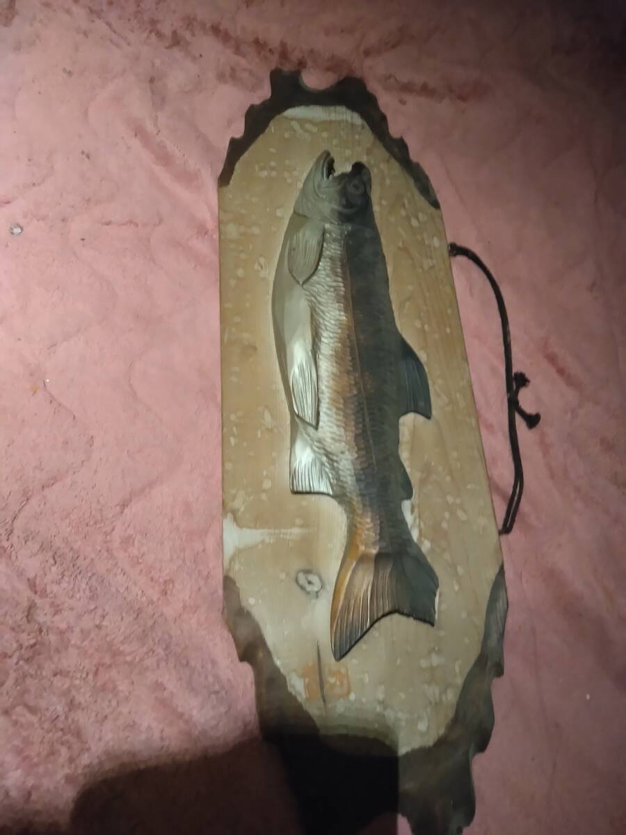 - 鮭の木製飾り物