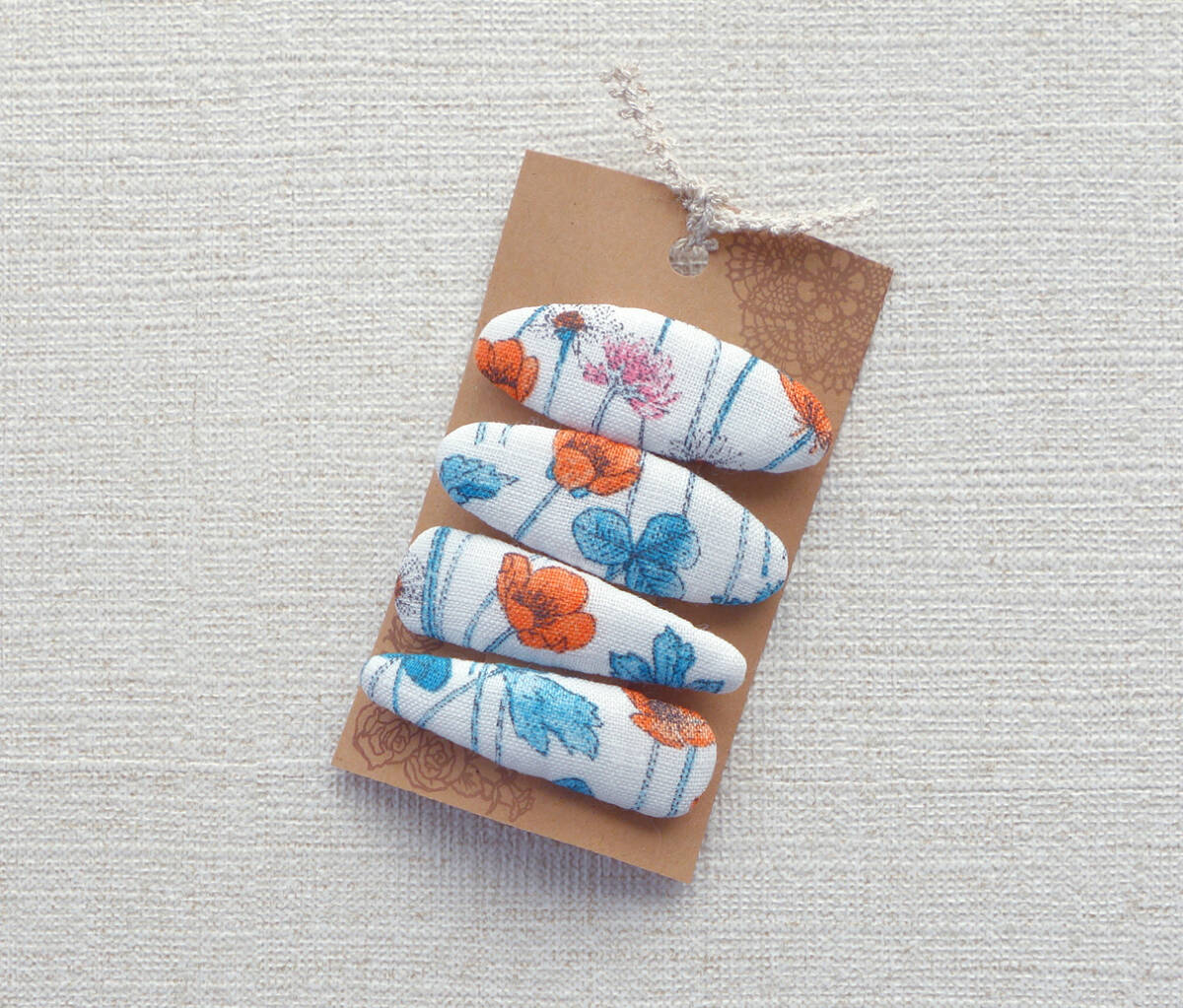 - ★ ハンドメイド リバティプリント使用 小花柄5㎝パッチンピン ジョセフィンズガーデン オレンジ ★