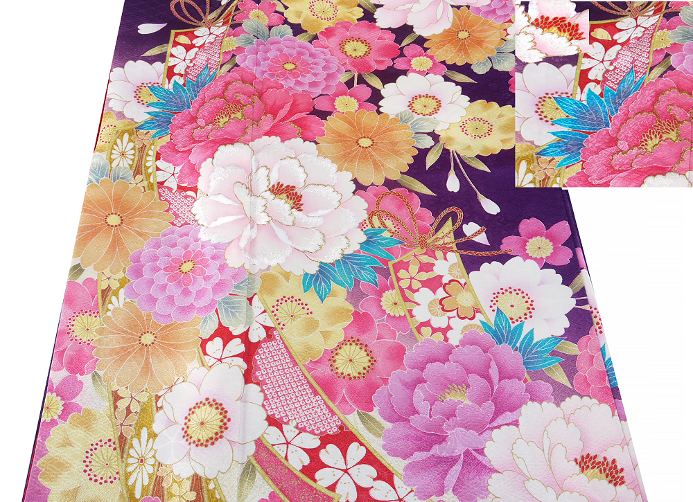 - 【京かんざし】b-393★豪華振袖 ラメ刺繍入り ガード加工済み 身丈171 cm 裄丈70 cm★即決送料無料!