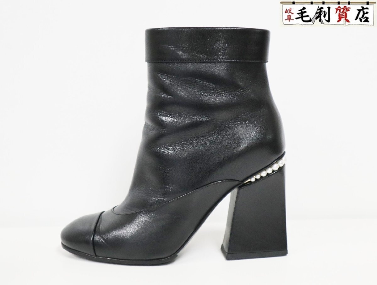 > CHANEL シャネル 22A G39262 ゴートスキン ココマーク パール アンクルブーツ サイズ37 ブラック ゴールド金具 美品 靴 ブーツ