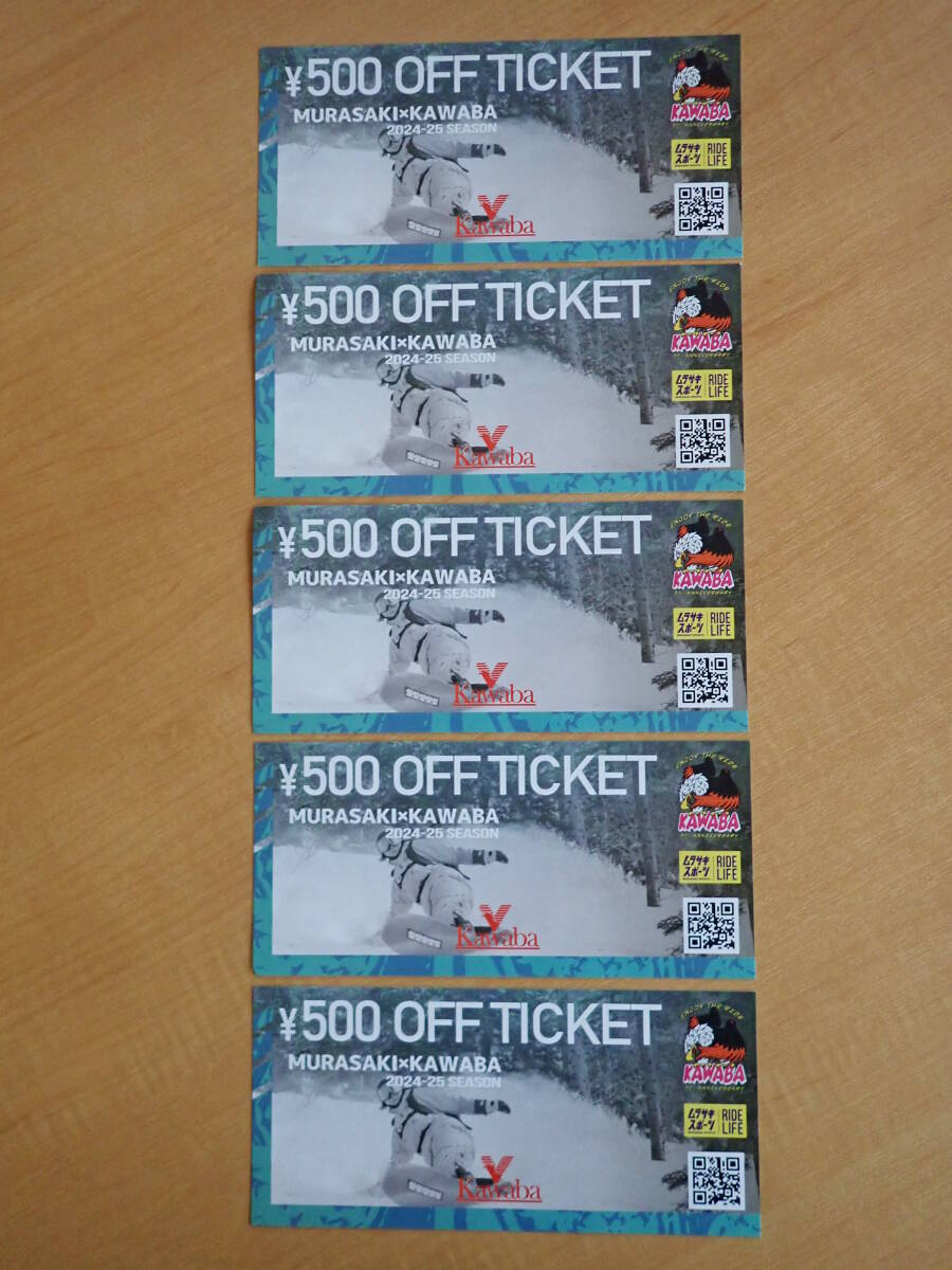 - 【Kawaba】5枚セット MURASAKI * KAWABA 2024-25 SEASON 500円OFF TICKET ムラサキスポーツ 川場スキー場