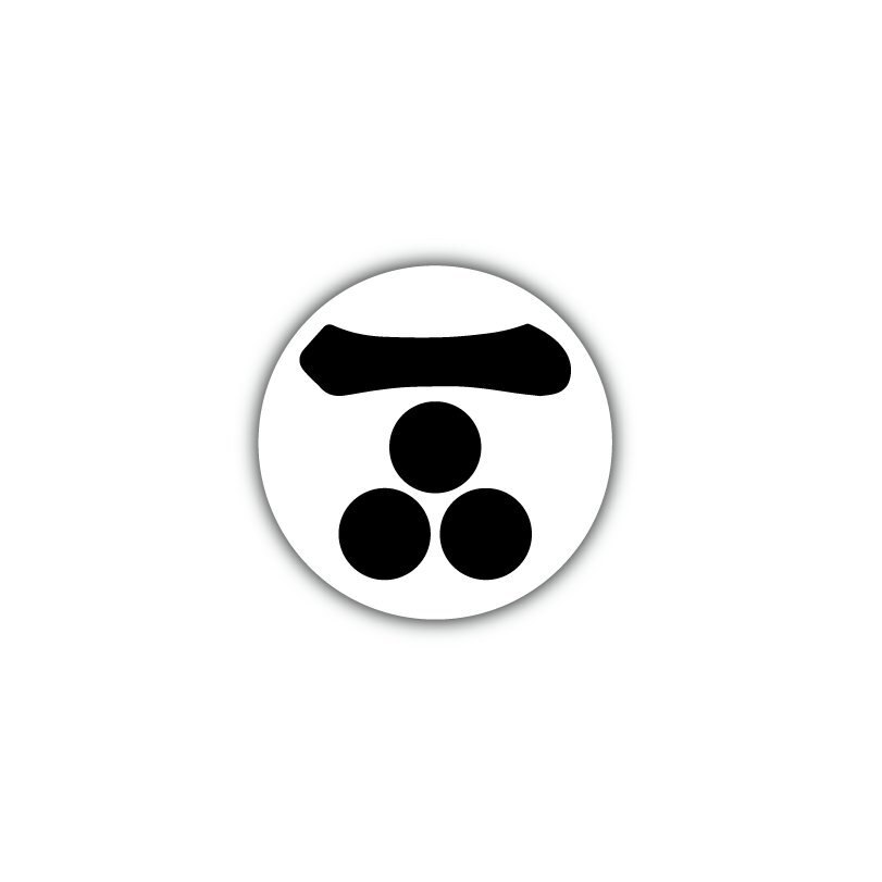 - 戦国武将 家紋 缶バッジ 44mm 1個 毛利元就『一文字三星』白ベース 推しグッズ 謀神 缶バッチ 雑貨 戦国グッズ 武将グッズ