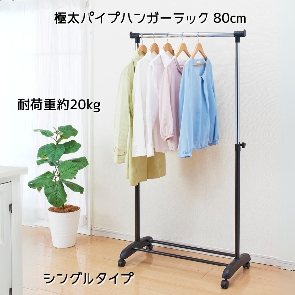 - 幅80cm 耐荷重 20kg 極太 パイプ ハンガーラック パイプハンガー 洋服 おしゃれ ハンガー ラック キャスター付き