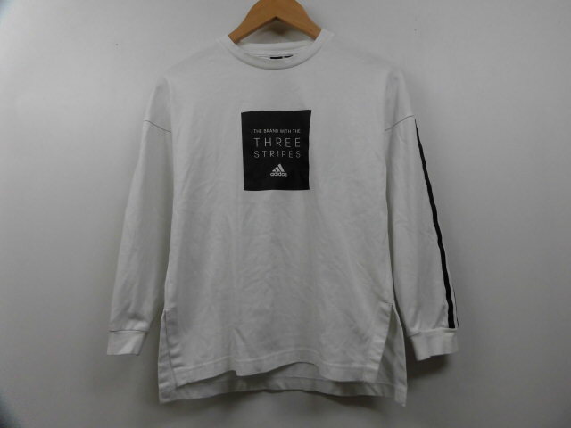 - adidas THREE STRIPES スリーストライプス キッズ 子供用 ロンT ロゴ 長袖Tシャツ トップス サイドラインスリーブ ホワイト 白 約140cm