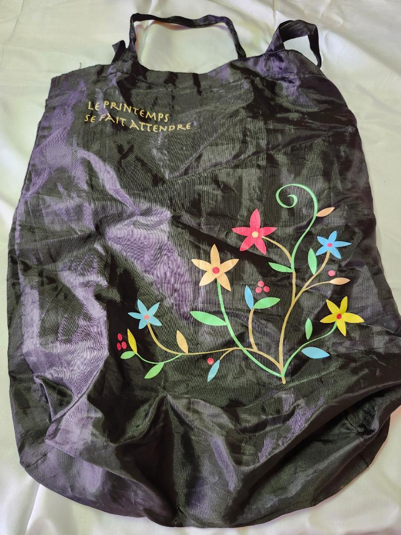 - LE PRINTEMPS SE FAIT ATTENDREと書かれている買い物袋