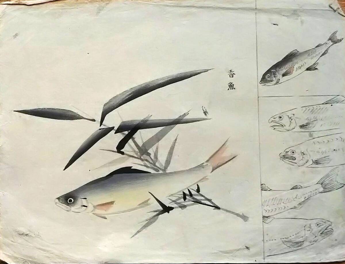 - f24112235〇彩色木版画 香魚 図3様3態 大正時代〇和本古書古文書
