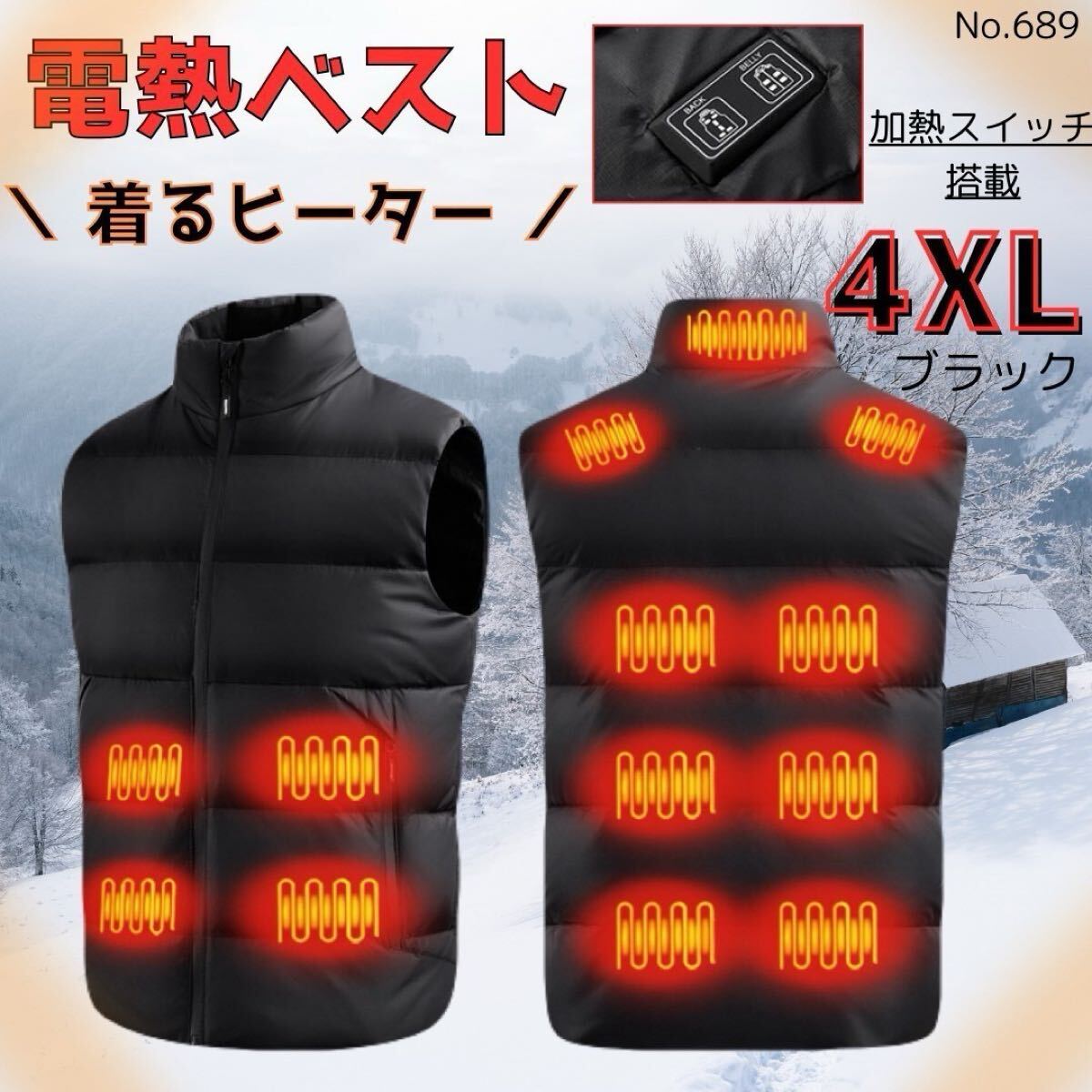 - 電熱ベスト ブラック 4XL ヒーターベスト 加熱ベスト 防寒 保温 ジャケット