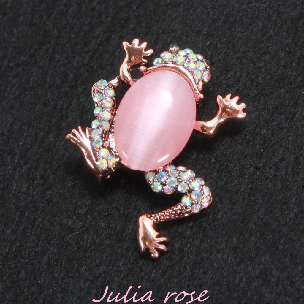 - ピンクのカエルのブローチ 可愛い小さな蛙のブローチ ラインストーン ピンク 襟元等 新品