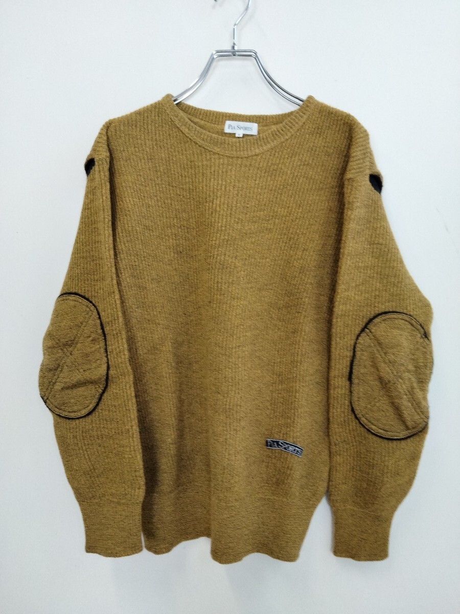 > ★ ヴィンテージ PIA SPORTS ◆ エルボーパッチ セーター マスタードブラウン サイズ4 ウール リブニット ピアスポーツ ◆W10 ごL9Rう-02