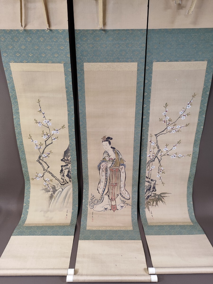 - k21 瑤池金母図 西王母 希少 三幅対 木箱 掛軸