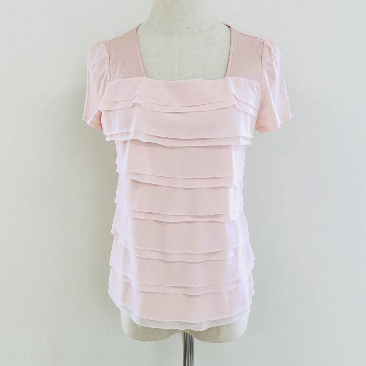 - YAS0065 style com スタイルコム レディース トップスTシャツ半袖フリルMピンク桃 無地 かわいい平成キュート夏シンプルデイリーカジュアル