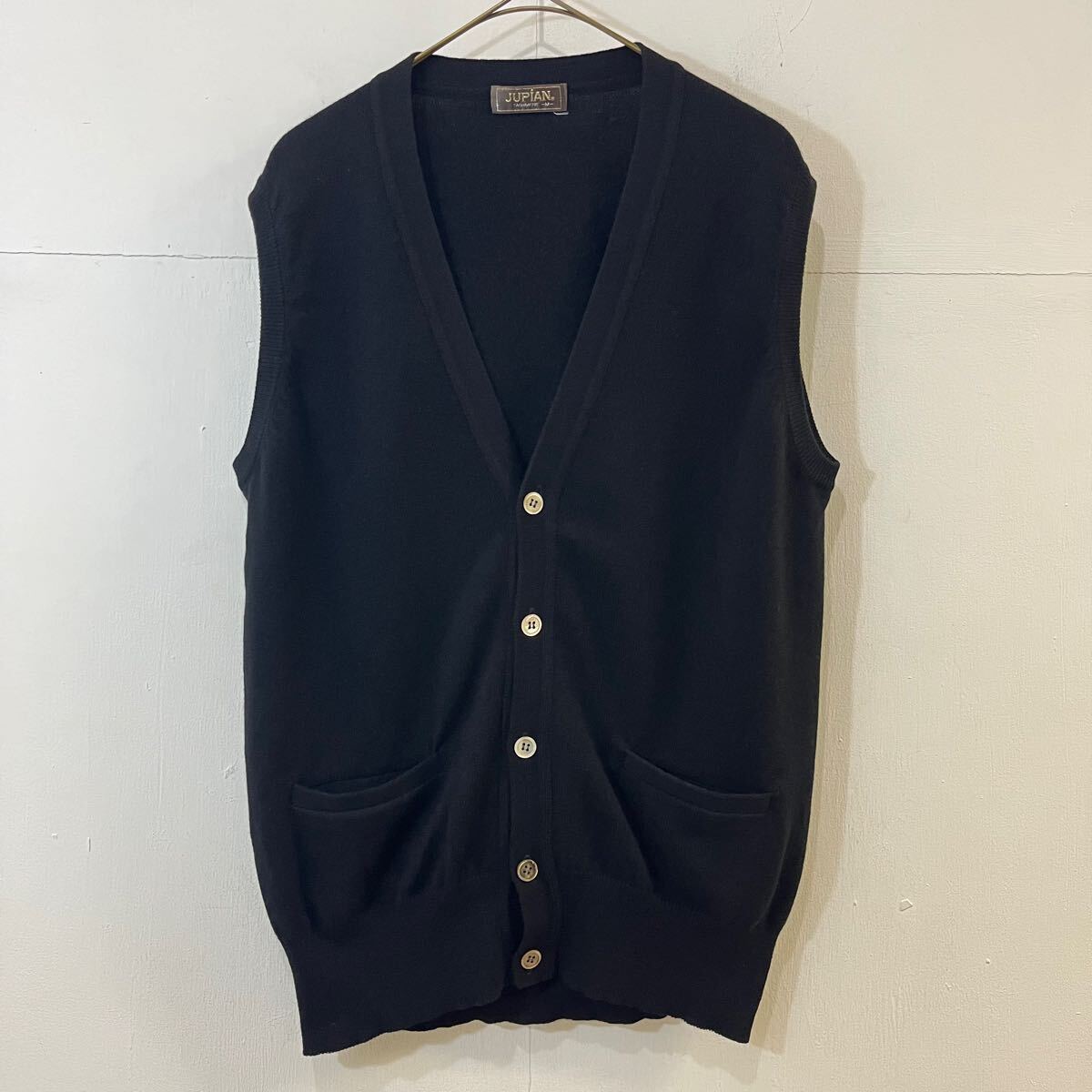 > JUPIAN CASHMERE カシミヤベスト カシミヤニット ニットセーター ニットベスト Vネックベスト 黒 ブラック【レターパックプラス郵送可】L
