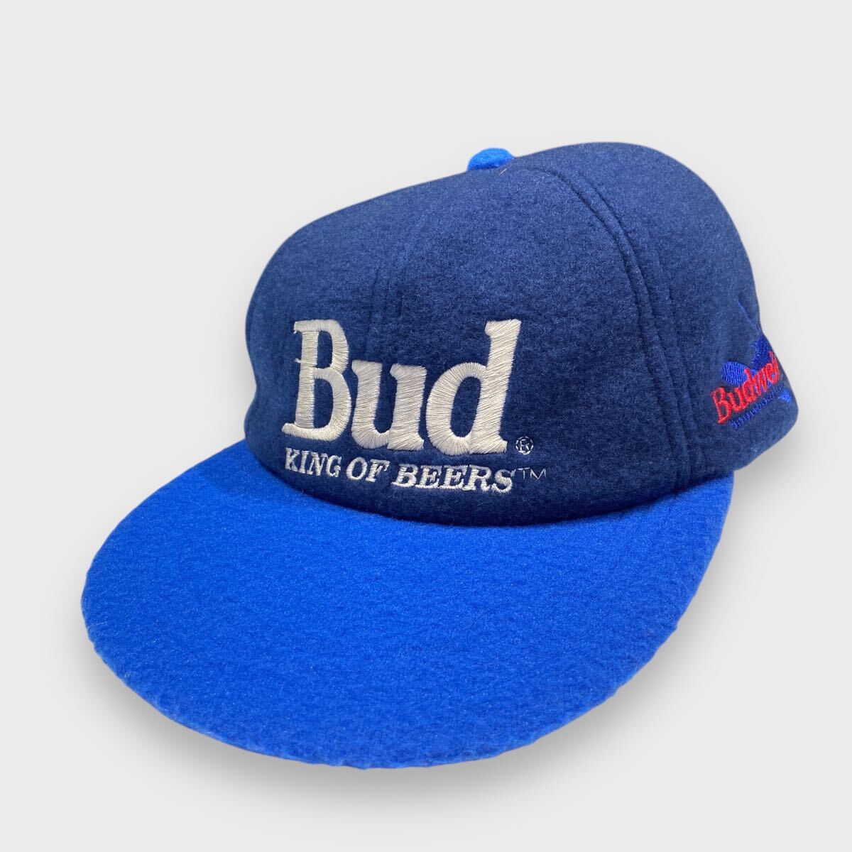 - 送料無料☆90s☆Budweiser☆バドワイザー☆フリースキャップ☆企業ロゴ☆青☆フリー