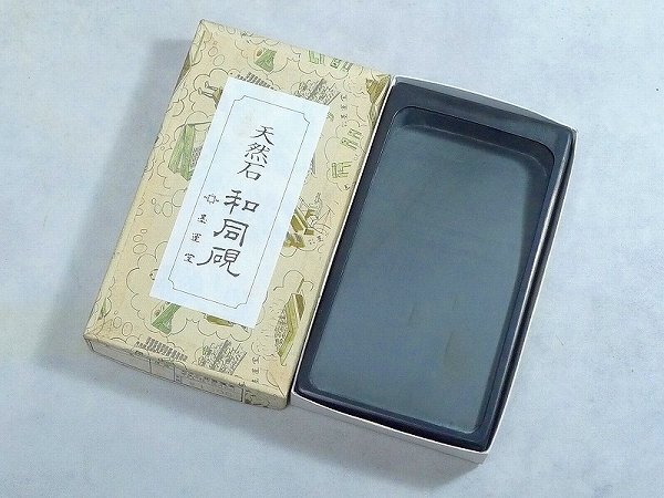 - 00AB692▲[28]未使用品 墨運堂 四五平 天然石 和同硯・書道墨汁水墨画すずり