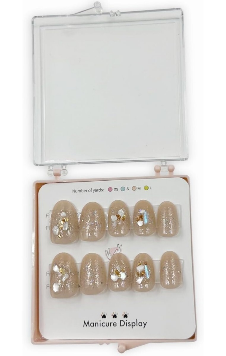 - M-142@SIFASHION 24枚セット 可愛で優しい フラッシュ シェルネイル 短めタイプのネイルチップ ネイルチップ