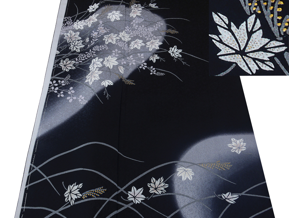 - 【京かんざし】b-434★訪問着 月 金彩 ぼかし染め きもの日本橋 かのこ 黒地 躾糸付未着用身丈162 cm裄丈67 cm袖丈53 cm★即決送料無料!