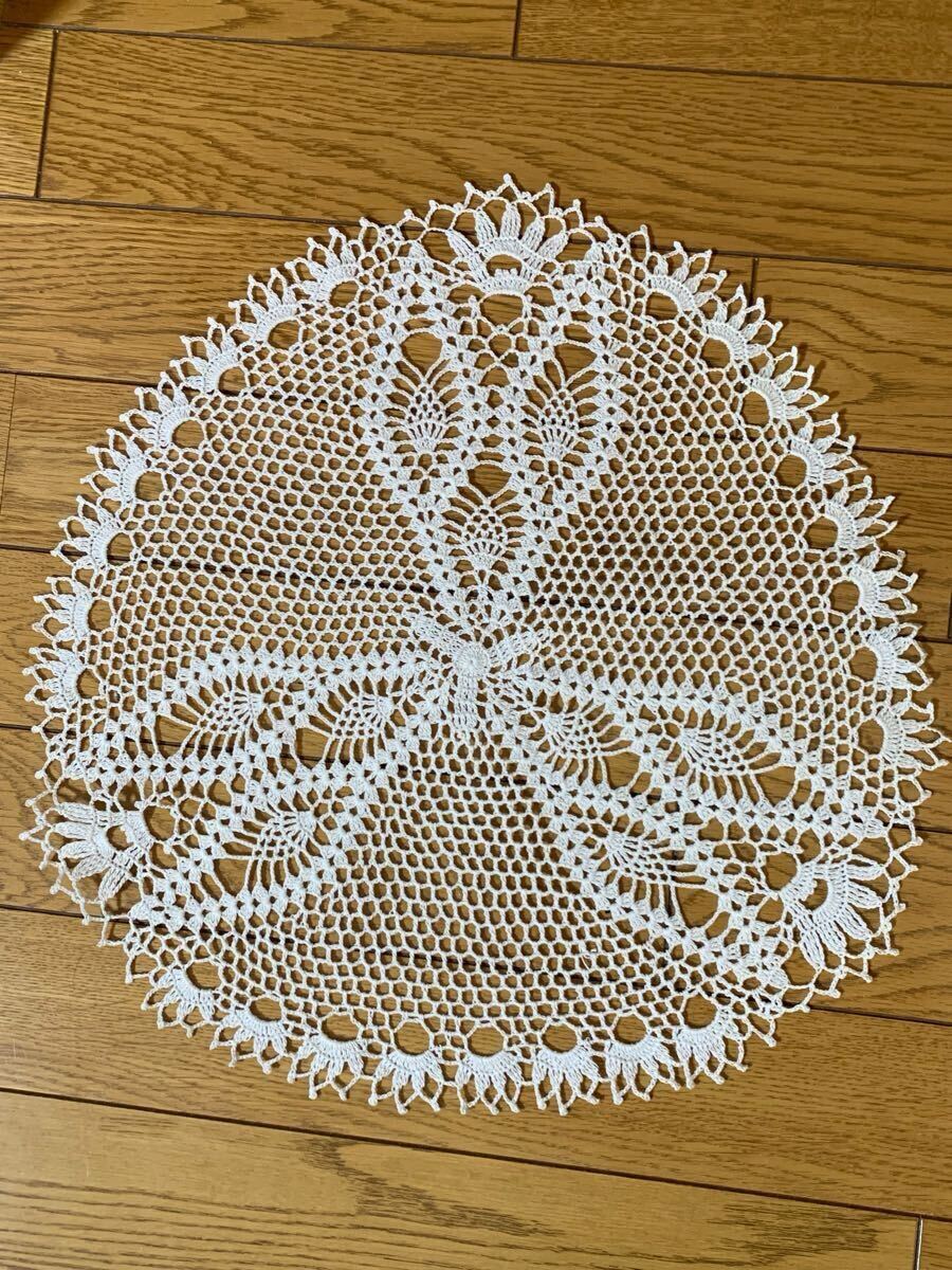 > 送料込 ドイリー パイナップル レース編み 38〜39㎝ 円形 テーブルセンター 花 白 ハンドメイド レトロ アンティーク