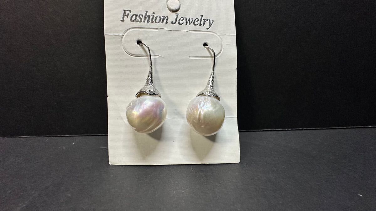 - 天然淡水パール バロックパール オーロラ ホワイトヤリング