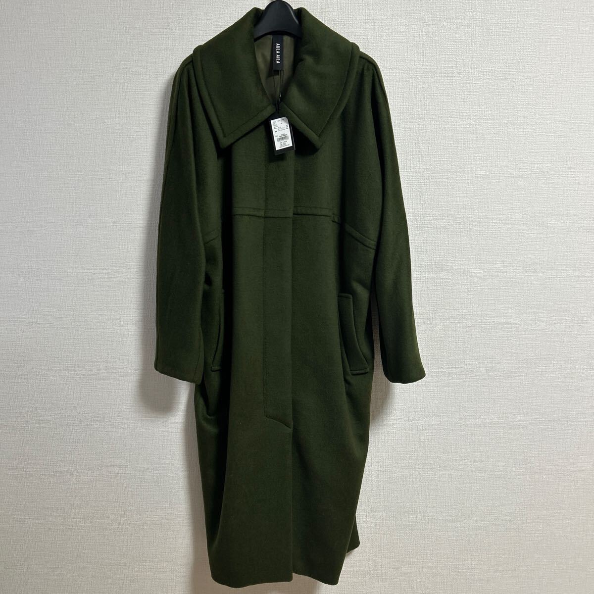 - 新品タグ付 AULAAILA チェスターコート サイズ0オリーブ アウラアイラ ロングコート ラウンドシルエット 定価42,900円税込