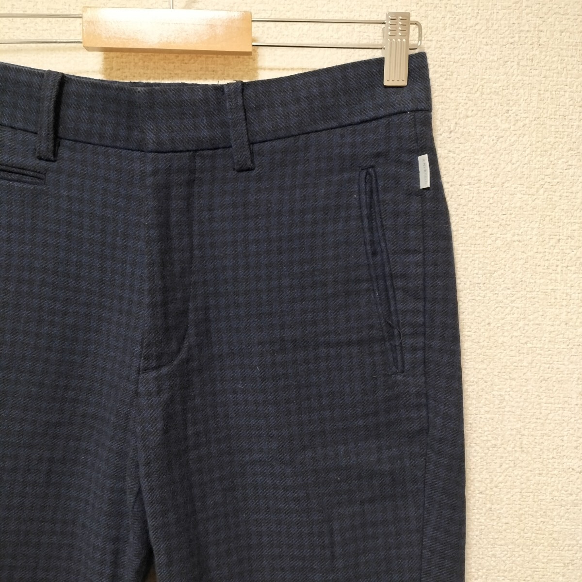 > ★R.NEWBOLD アールニューボールド ウールコットンパンツ スラックス チノパン NAVY チェック柄 高級生地 MOON社製仕様 ポールスミス 古着