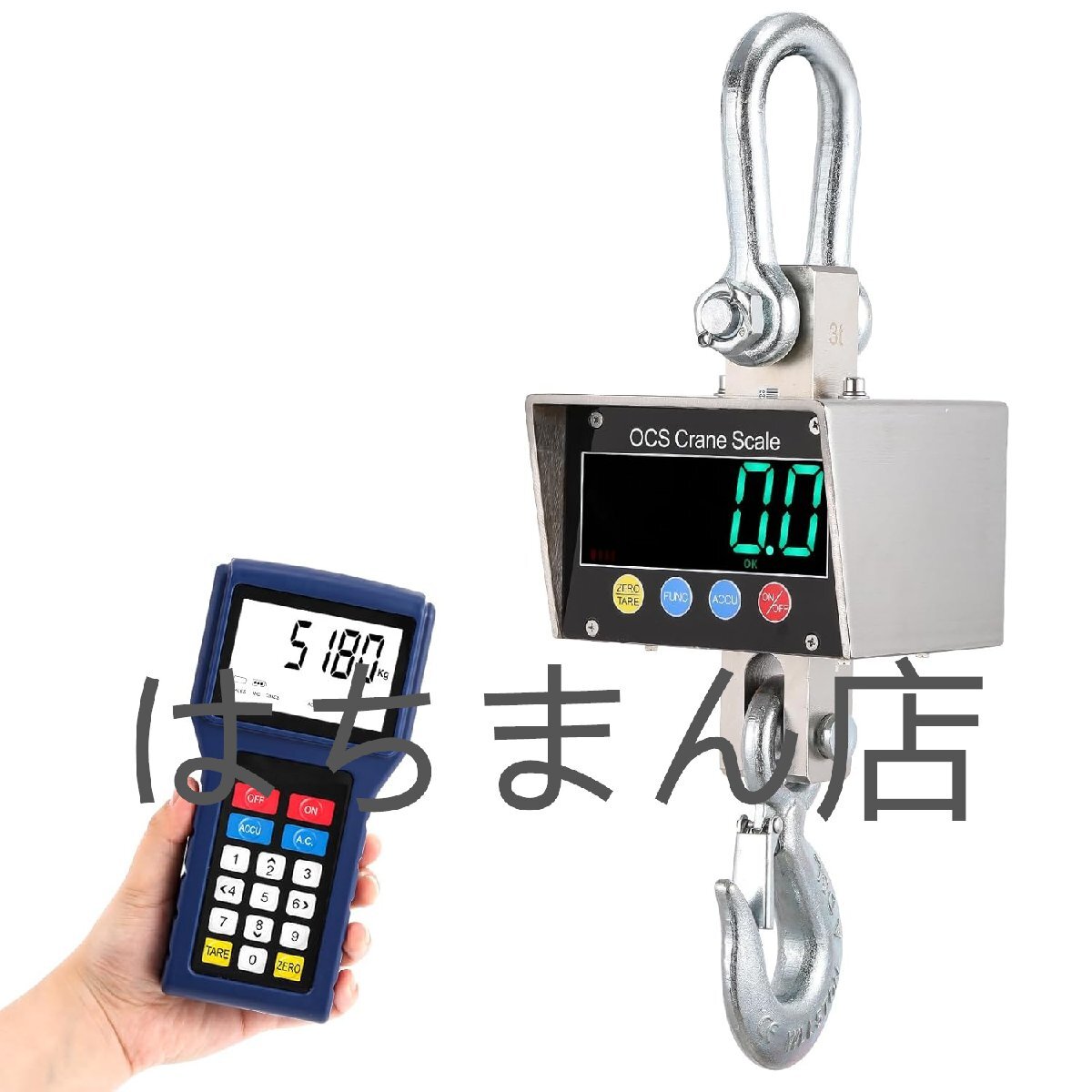- 吊りはかり デジタルクレーンスケール 電子吊秤 1T~5T 無線 ワイヤレスモコン付き 風袋引き機能 吊り下げ式 建設現場/製造工場 (1T)