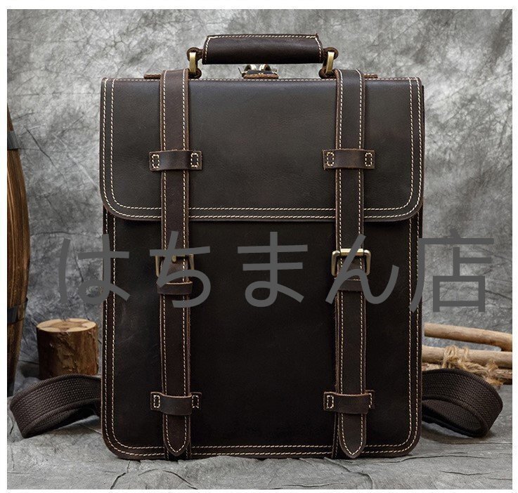 - 本革 リュックサック デイパック メンズ 14インチ PC収納 男性用 牛革 バックパック