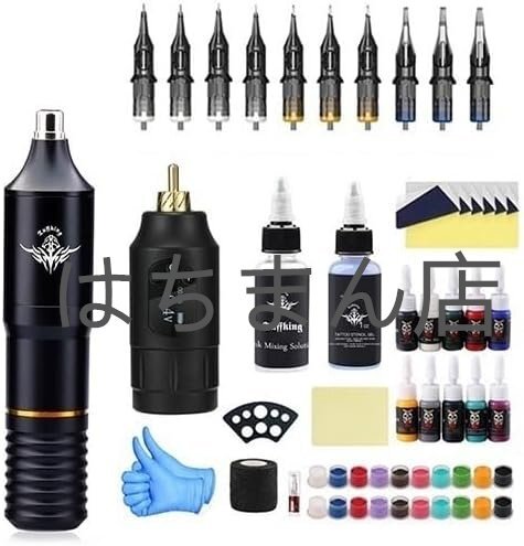 > タトゥーマシン、ワイヤレスタトゥーマシン 、タトゥーマシンセット タトゥー転写クリーム 10色のタトゥー顔料付き (Color : Black+Gold)