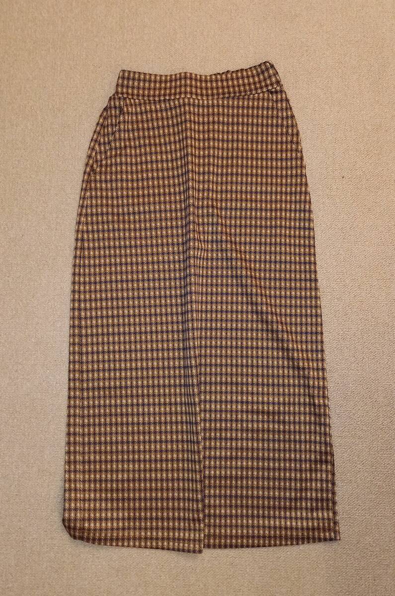 - ☆ レディース ロングスカートとベスト フリーサイズ 茶色チェック (古着)