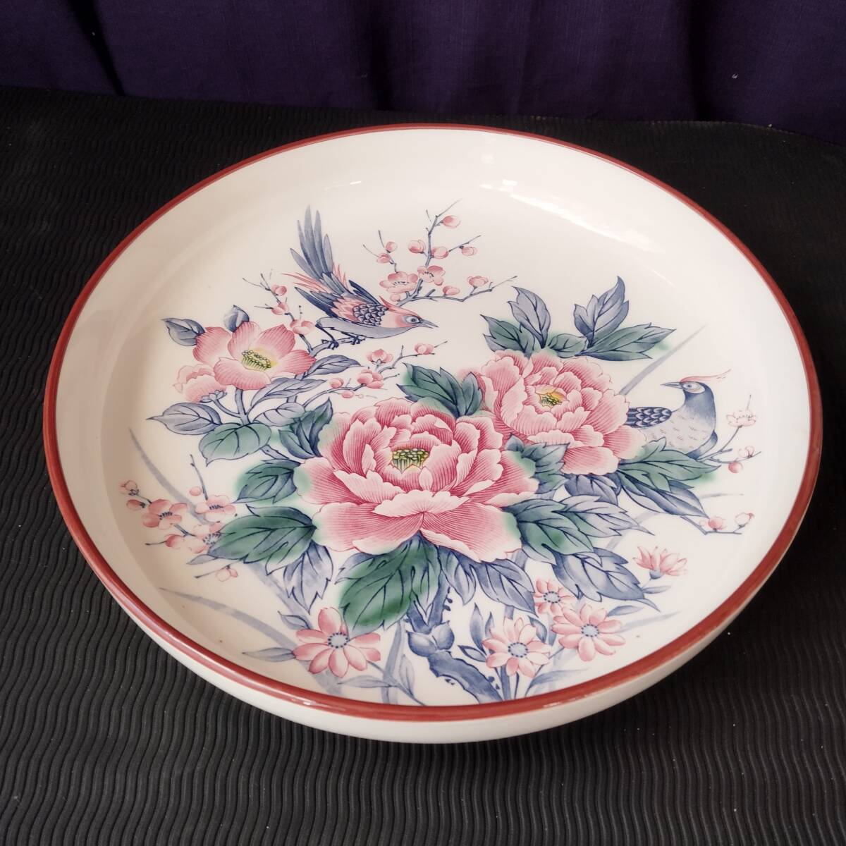 - 陶器 梅鳥紋 牡丹柄大皿大皿 飾り皿 骨董品 アンティーク 昭和レトロ