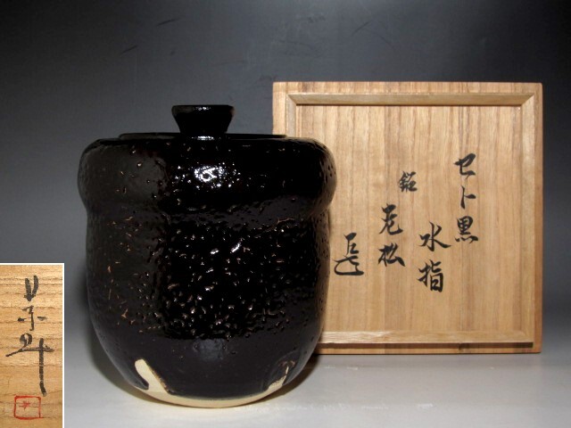 - 藤原敬介(恭助)瀬戸黒水指「老松」表千家十四代而妙斎花押☆c928
