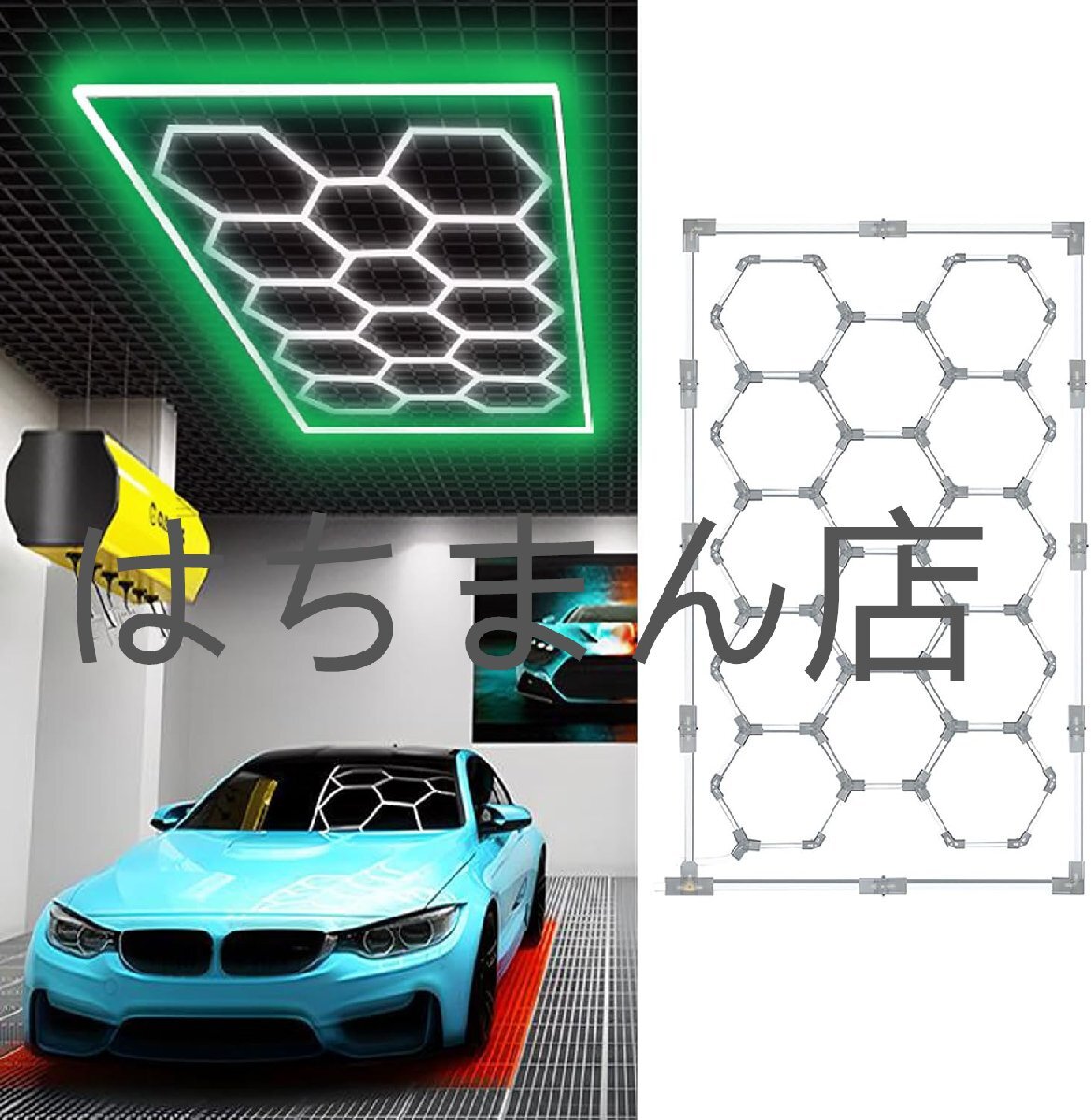> ガレージライト カラフルLED 洗車室 天井用 110V ハニカムライト 3000-6500K 高輝度 DIYセット 白/暖かい光 六角形 照明 カーポート green