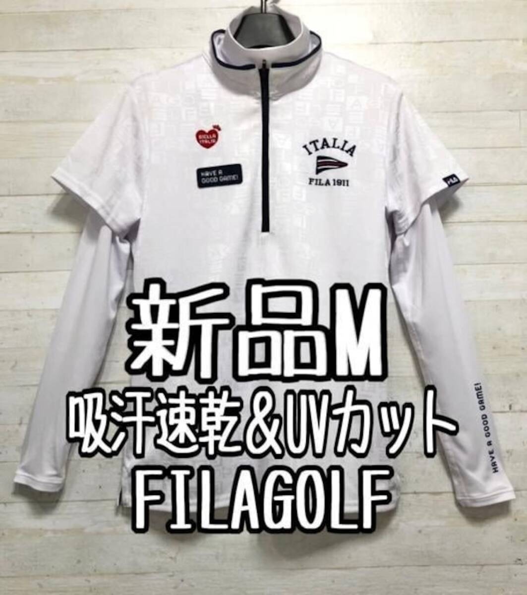 - 新品☆M白系♪FILA♪ゴルフウエア2枚セット♪ハーフジップ〇A502