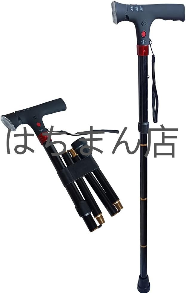 - 杖 折りたたみ 80cm/90cm 歩行器 コンパクト 軽量 アルミ 老人用杖 つえ 女性用 男性用 ステッキ LEDライト搭載 高さ調節 伸縮可能