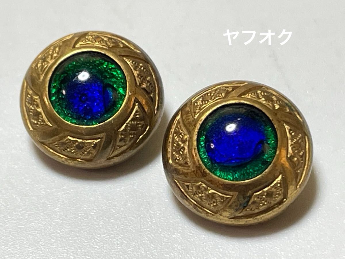- 異素材ボタン 2個 フランス アンティーク ヴィンテージ 13ミリ ガラス メタル ピーコックアイ
