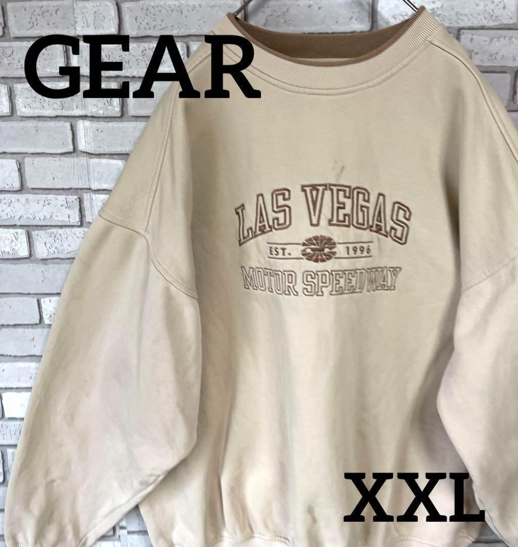 - USA製 GEAR スウェットトレナー ビックメンズXXLサイズ ベージュ カーキ ラスベガス刺繍 アメリカギア LAS VEGAS アメリカ ギア