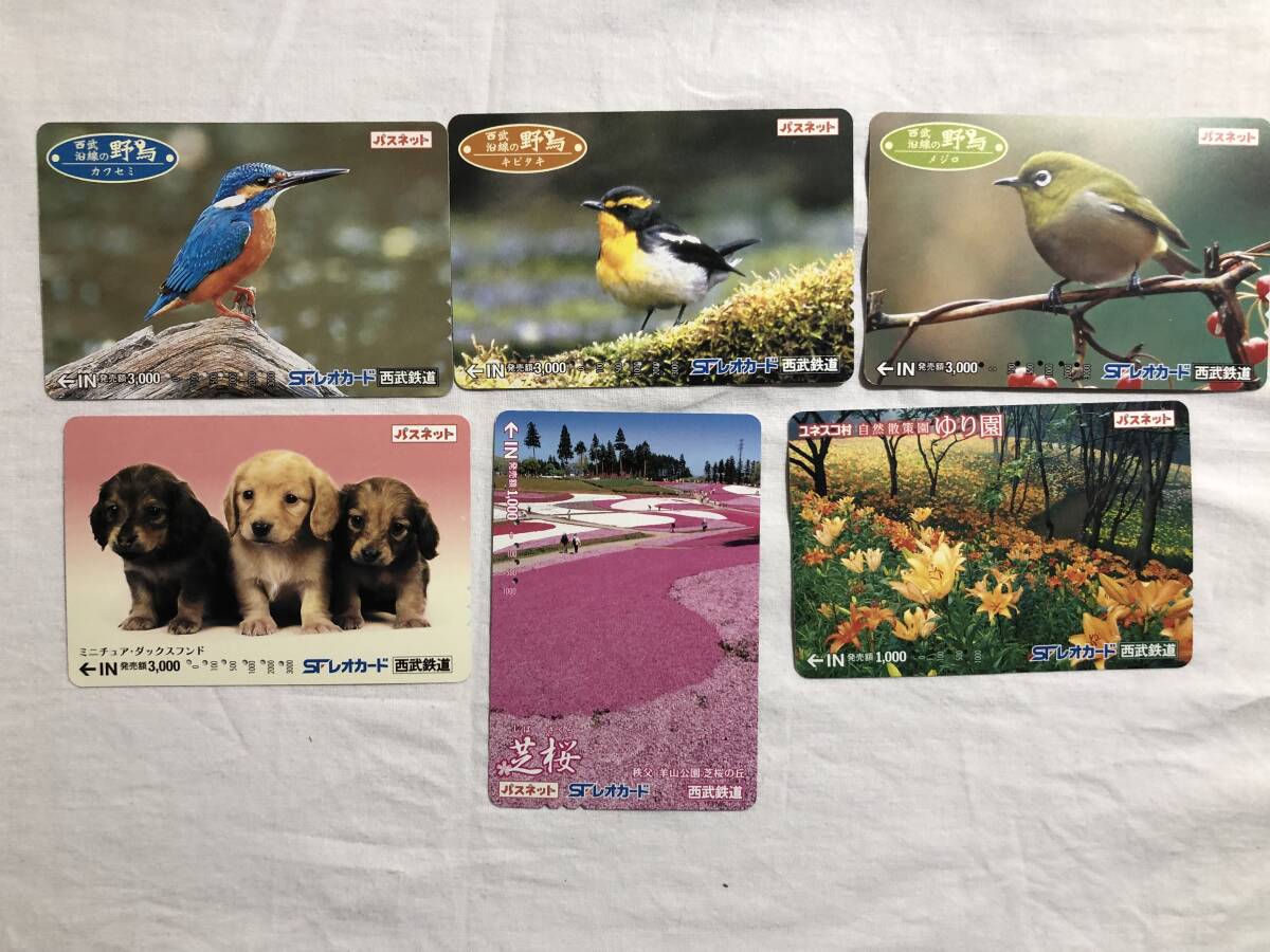 > 【送料無料】6枚 使用済み パスネット 西武鉄道 SFレオカード 野鳥 カワセミ キビタキ メジロ 犬 ミニチュア・ダックスフンド 花 芝桜 ゆり
