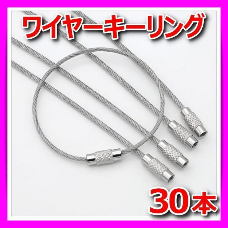 > ワイヤー キーリング キーチェーン ステンレス 細い 小さい 15cm 鍵用 カギ用 ロック キーホルダー チャーム ネジ式 小さめ シルバー 30本