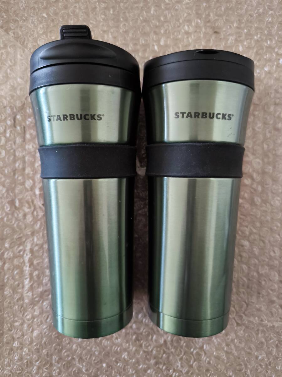 - 未使用【海外レア】スタバ スターバックス グランデ タンブラー ペア2個セット グリップ付き 緑 グリーン ステンレス ボトル 水筒 473ml