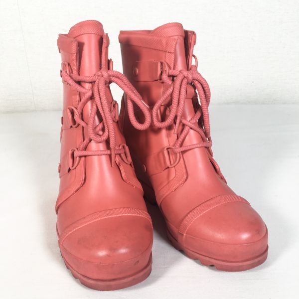 - 【ヒール高さ約7㎝】SOREL ソレル レインブーツ 赤系 ゴム素材 ブーツ 26cm ウェッジソール