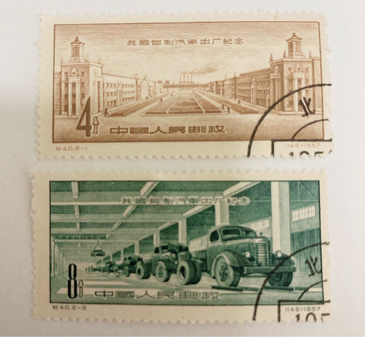 - 中国切手 自動車工場完成 紀40 消印有り