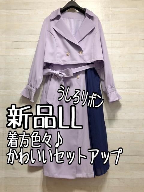 - 新品☆LLパープル系♪後ろリボン&切替プリーツ♪セットアップ♪2.1万円☆p590